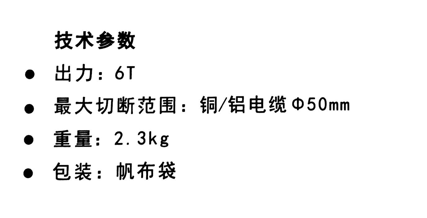 适用于切割铜、铝电缆 翻开式头部设计,便于被切物放入 头部可自由旋转360°