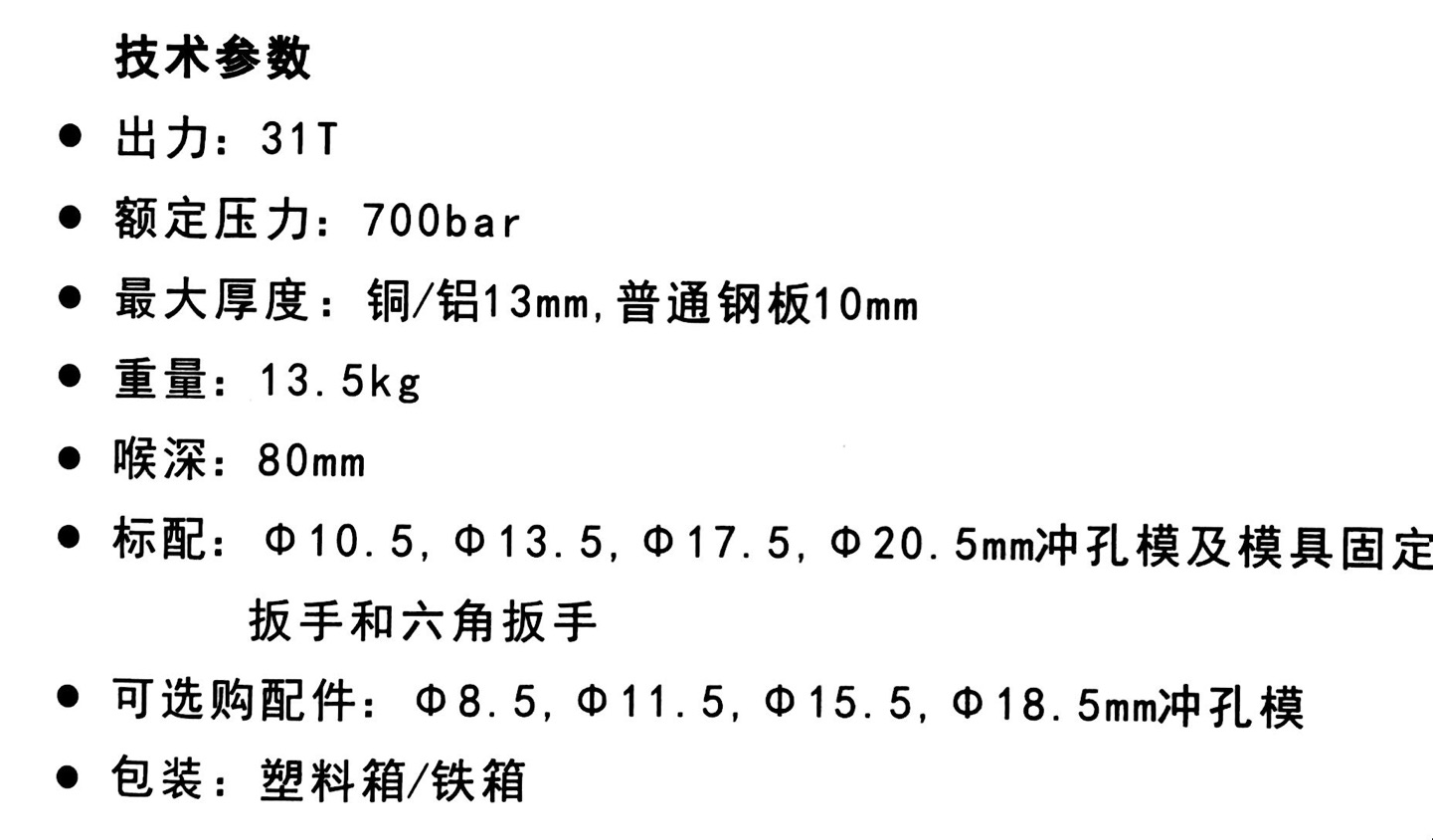 •液压冲孔可以免除钻孔时产生的切屑,作业时较为安全以 及清洁