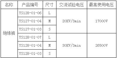 树脂绝缘裤技术参数